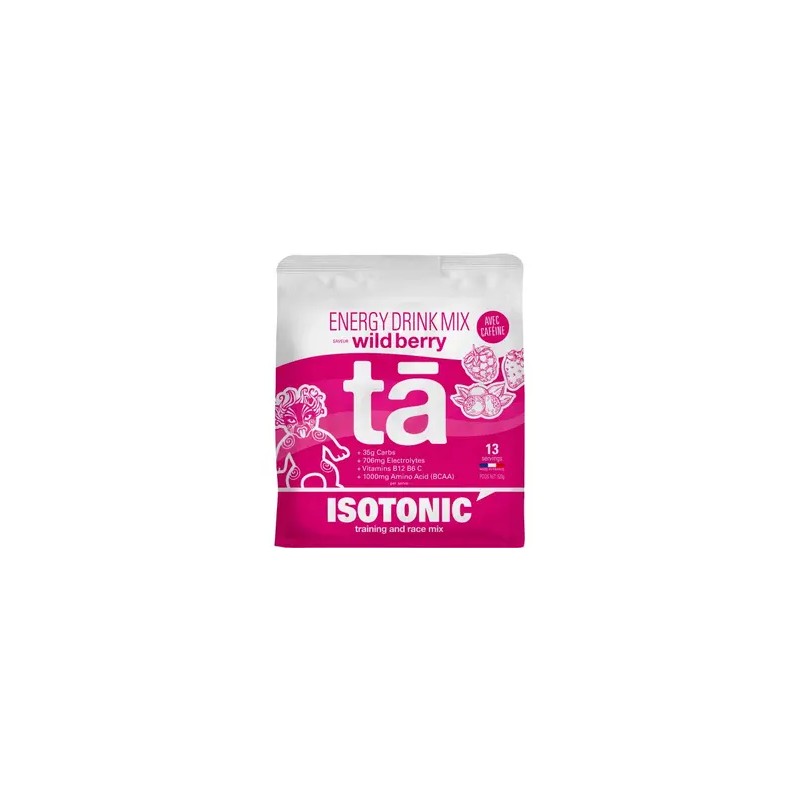 La boisson isotonique Tā Energy saveur Fruits Rouges soutient l’effort avec 35 g de glucides et 706 mg d’électrolytes par portion. À diluer, idéale en trail et endurance.