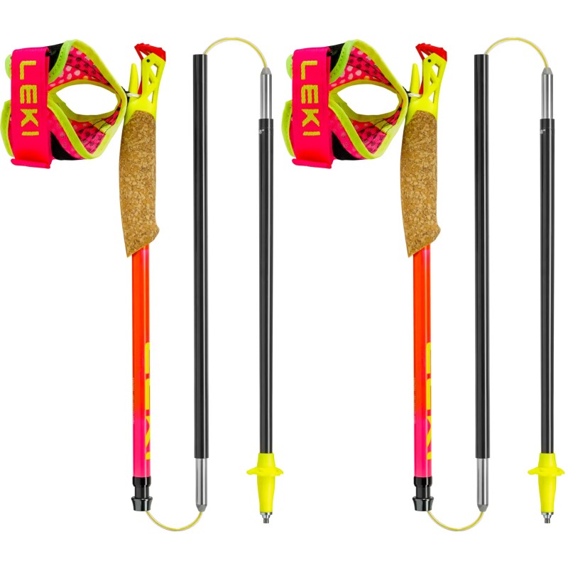 Nouveau modèle 2026, le LEKI Ultratrail FX.One SL Superlite Neonpink est un bâton de trail compétition ultra léger en carbone HRC Max, avec poignée Trail Trigger Shark (dragonne clipsable). Vendu par paire.