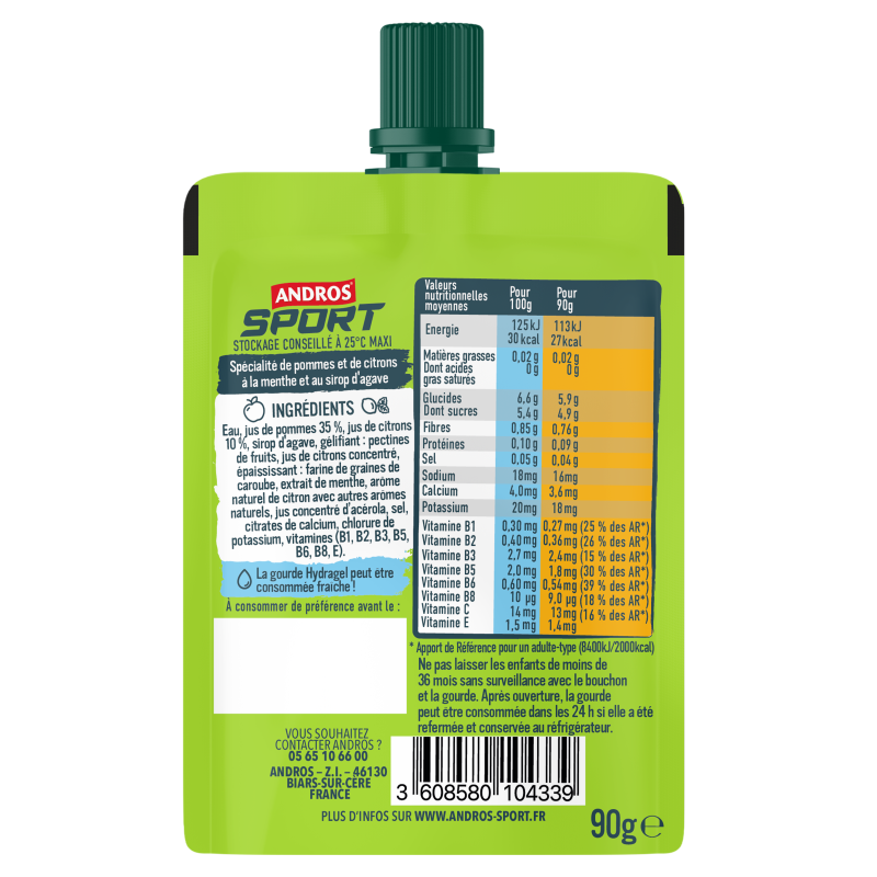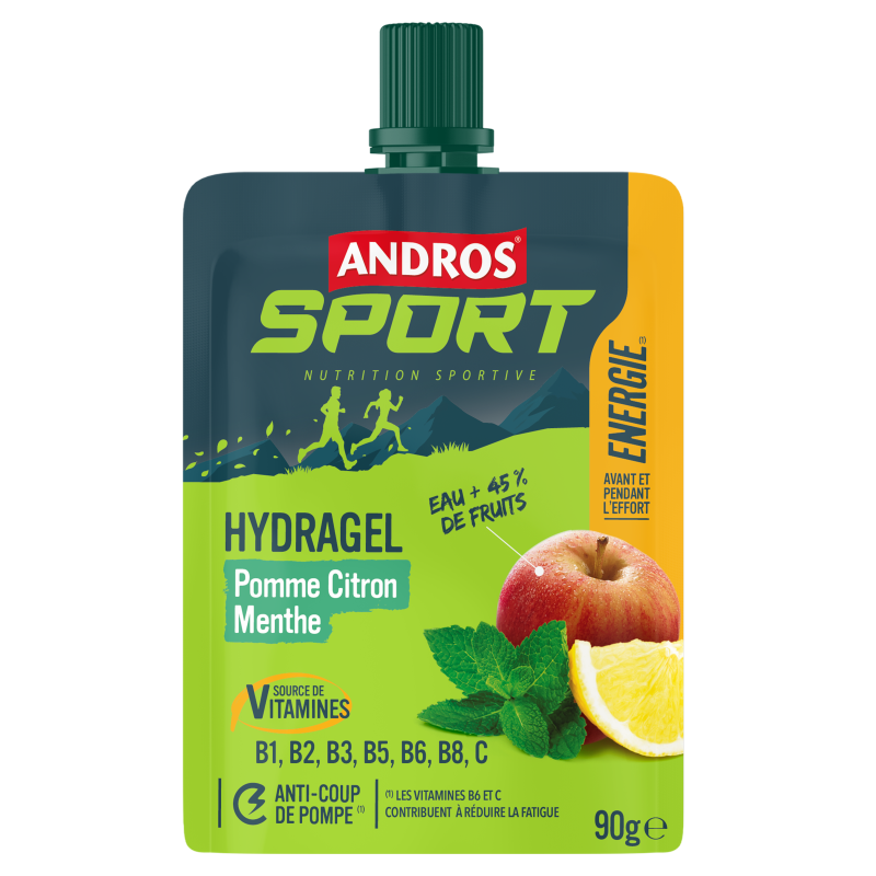 Gourde Hydragel Andros Sport – Pomme Citron Menthe : Hydratation optimisée pendant l’effort, avec une texture agréable et un goût rafraîchissant.