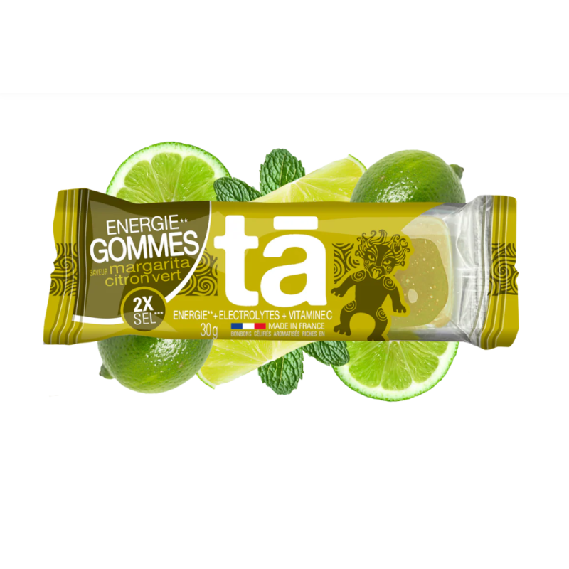 La gomme énergétique Margarita Salé de Tâ Energy est un snack énergisant au goût original, conçu pour vous fournir un coup de boost rapide pendant vos efforts physiques. Sa saveur salée et sa formule enrichie électrolytes en font un choix idéal pour les activités de longue durée comme le trail, le cyclisme ou les entraînements intenses.